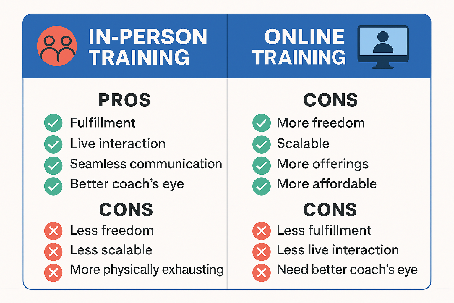 In-person vs online coaching